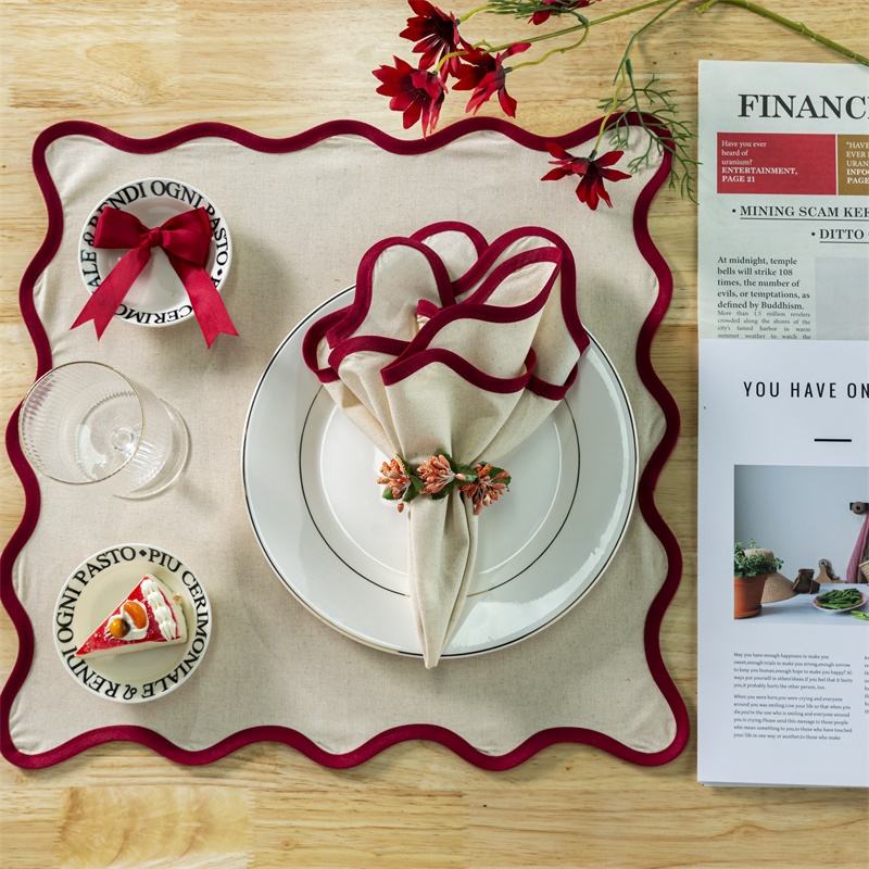 Cotton linen scalloped border edge embroidered napkin place mats