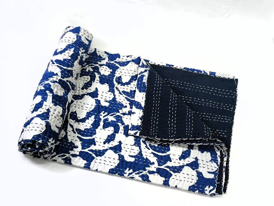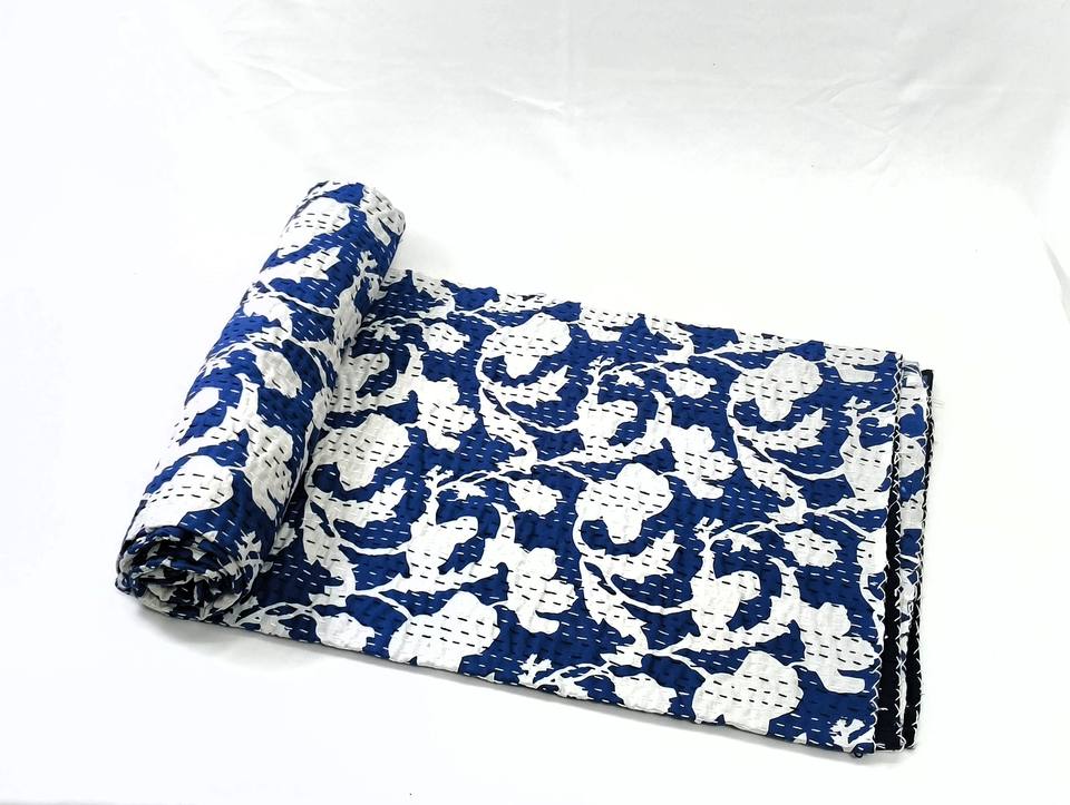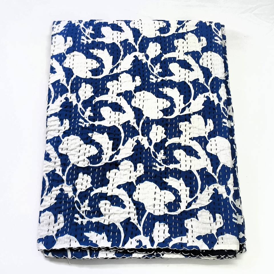 ผ้าห่ม Kantha พิมพ์ลายนกอินเดียทำด้วยมือ