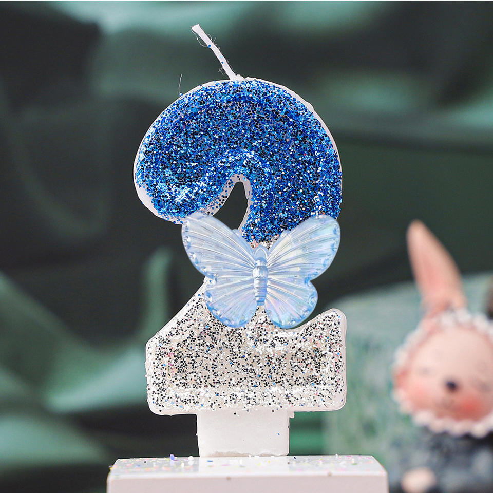 ชื่อผลิตภัณฑ์:เทียนวันเกิด0-9รูปเทียนเค้กผีเสื้อสีฟ้าประกาย