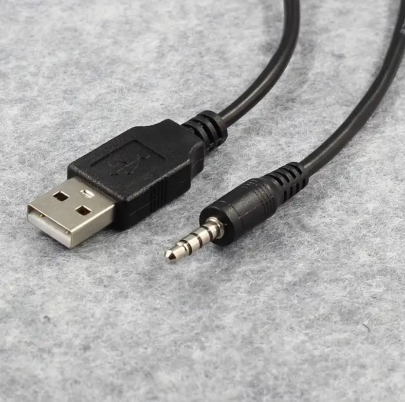 สายเครื่องเสียงรถยนต์สำหรับโฟล์คสวาเก้นฮอนด้าโตโยต้า3.5มม. สีดำติดตั้งกับพอร์ต USB AUX สำหรับรถยนต์