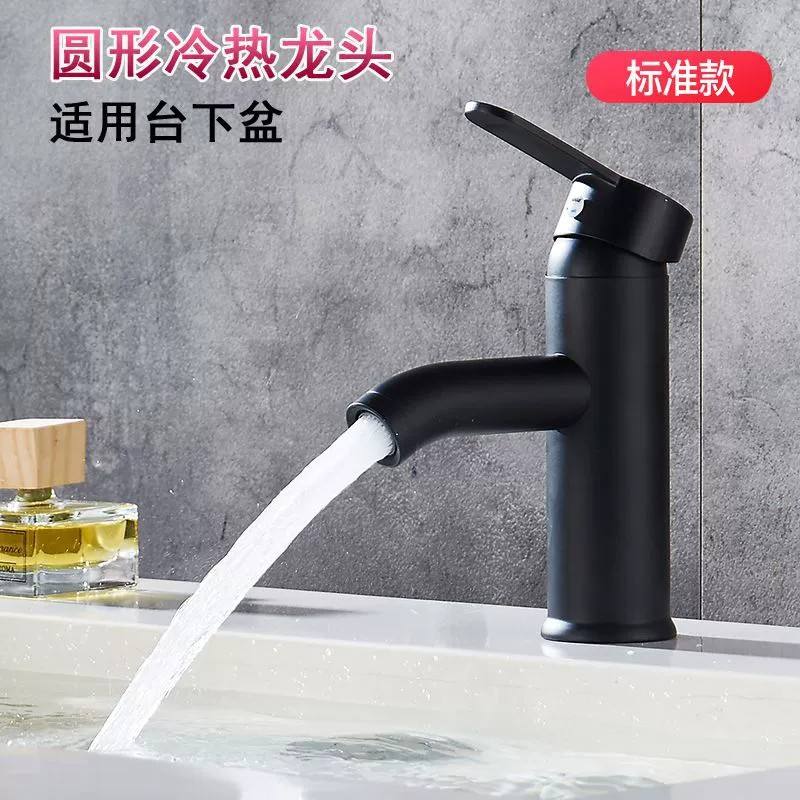 Black round [heightened] hot and cold water + 80cm water inlet pipe