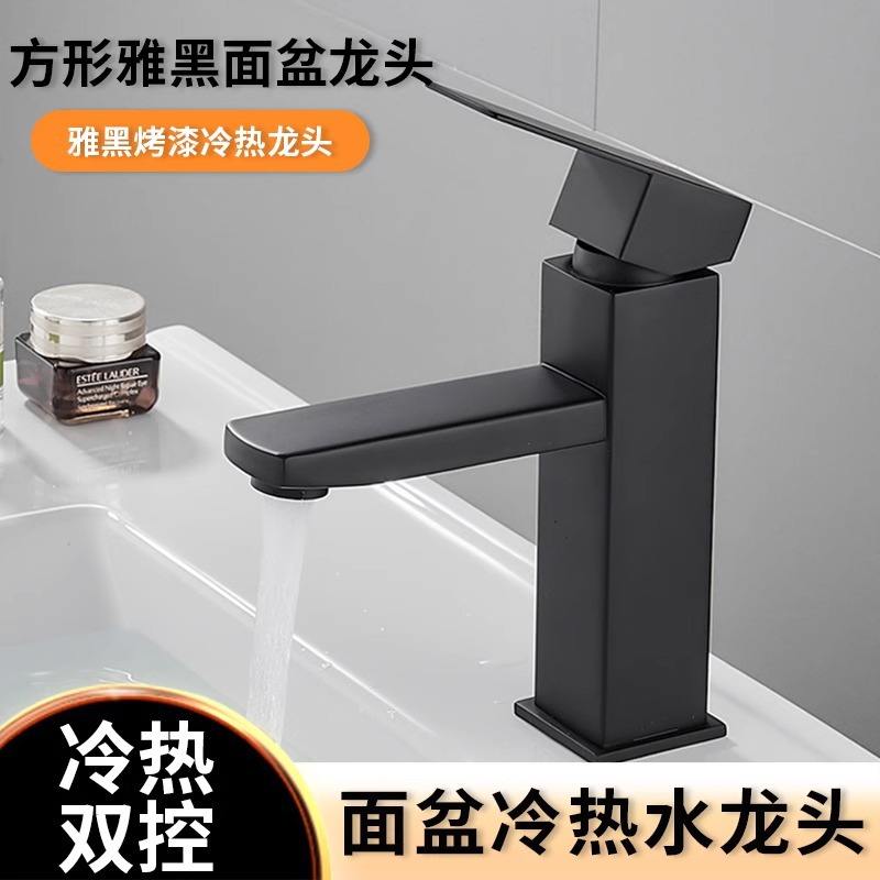 Black square hot and cold water + 60cm water inlet pipe