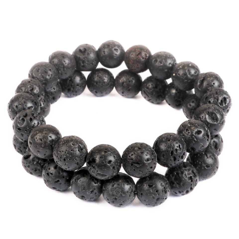 สร้อยข้อมือลูกปัดหินลาวาสีดำธรรมชาติ8มม. เชือกยืดหยุ่นปรับได้พร้อมเครื่องประดับสไตล์กำไลลูกปัดหลวม