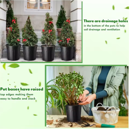 กระถางพลาสติกสำหรับปลูกต้นไม้1แกลลอนสำหรับรีไซเคิลสีดำคลาสสิก