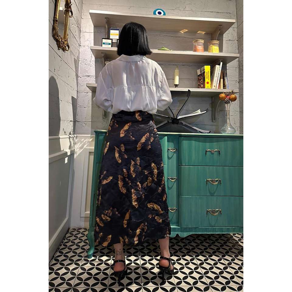 กระโปรงโครเชต์ปักลายดอกไม้สีดำขายส่ง ไซส์ XS เอวธรรมชาติ ความยาวระดับเข่า เสื้อผ้าเด็กผู้หญิงสำหรับฤดูใบไม้ร่วง