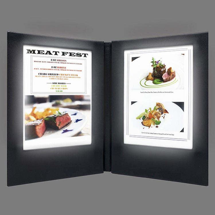 ปกเมนูหนังเทียมสีดำขนาด A4 แบบสองหน้า พร้อมไฟ LED ชาร์จได้ ขายส่ง