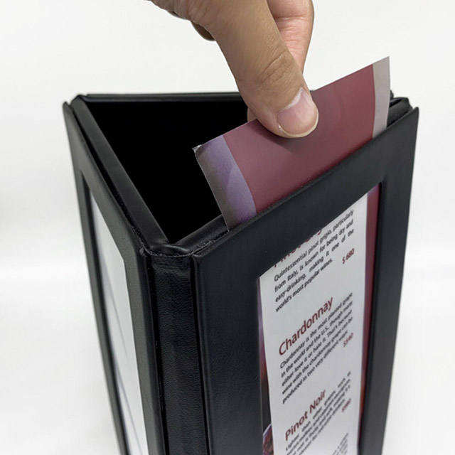 ปกเมนูหนังเทียมสีดำแบบขายส่ง ปกเมนูเรืองแสง 3 หน้าจอแสดงผลแบบ LED พร้อมขาตั้งแบบตั้งโต๊ะ