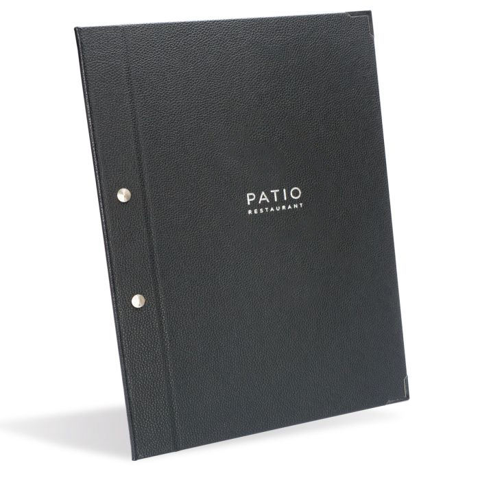 ปกเมนูหนังสีดำสำหรับร้านอาหาร พร้อมสกรูยึด สำหรับเมนูอาหาร เครื่องดื่ม คาเฟ่ ไวน์ แบบขายส่ง ปรับแต่งได้