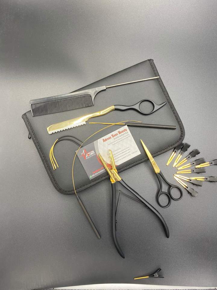 ชุดอุปกรณ์ต่อผมสีดำสีทองมีคีม