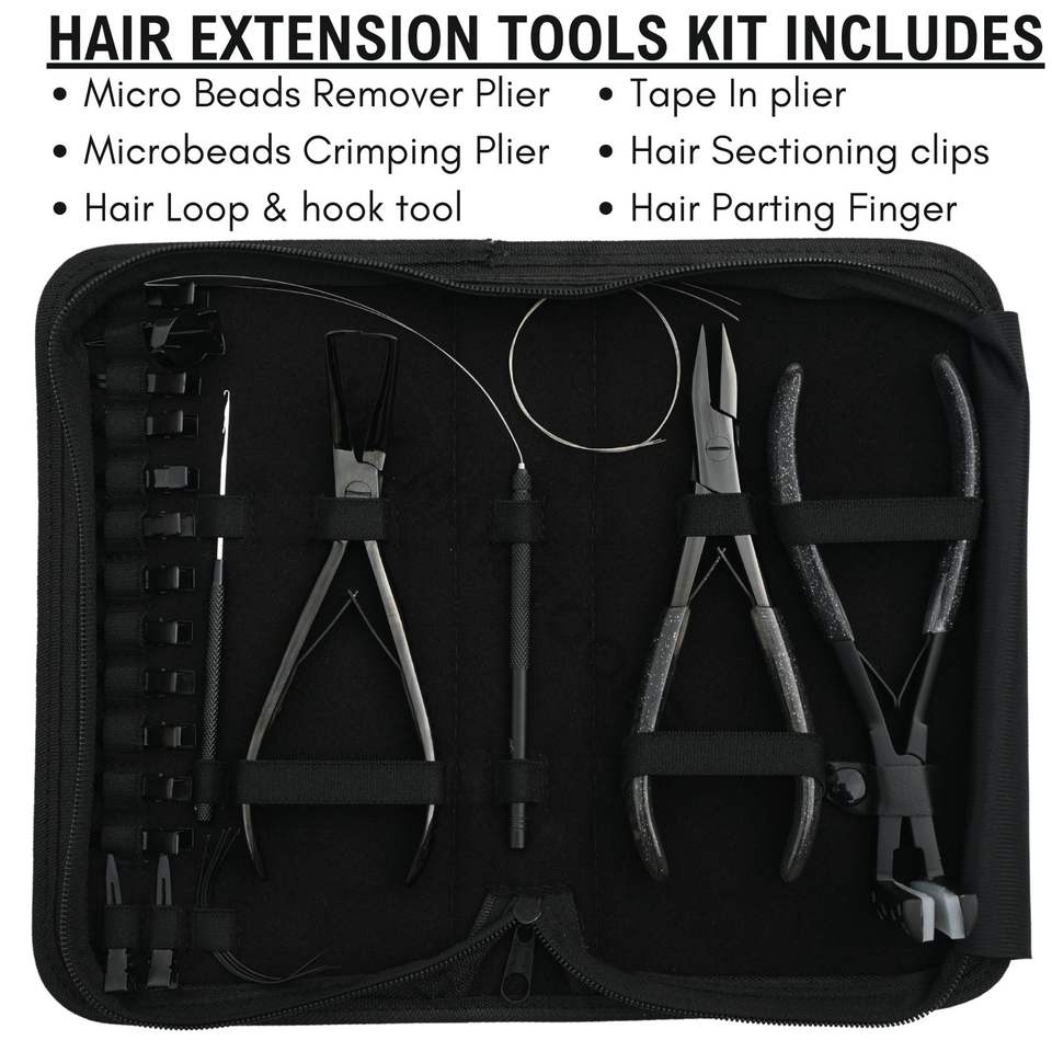Strongly Fixed Black Hair Extension Tools Set with 7 Inch Pliers