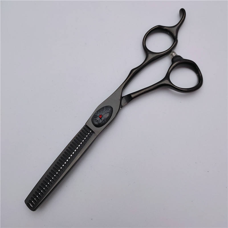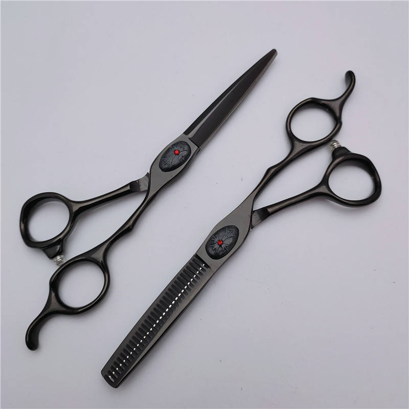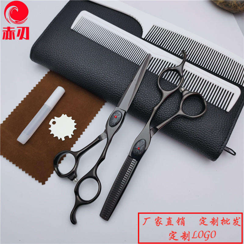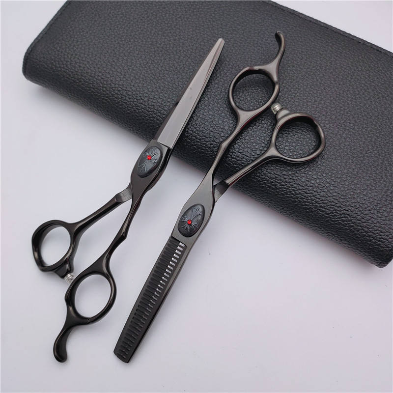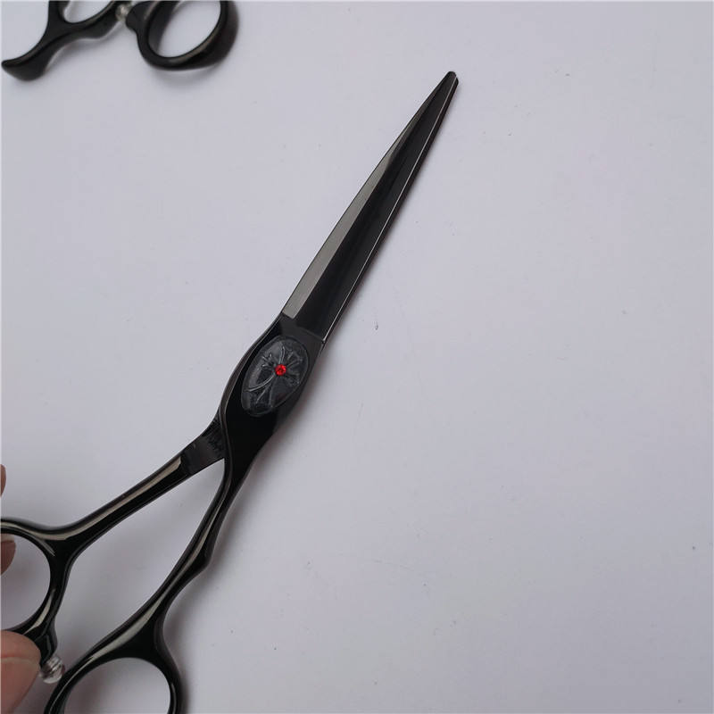 กรรไกรตัดผมสีดำขายส่ง HS 6.0 นิ้ว กรรไกรซอยผม กรรไกรตัดผมตรง สแตนเลส ด้ามยาว สำหรับมืออาชีพ