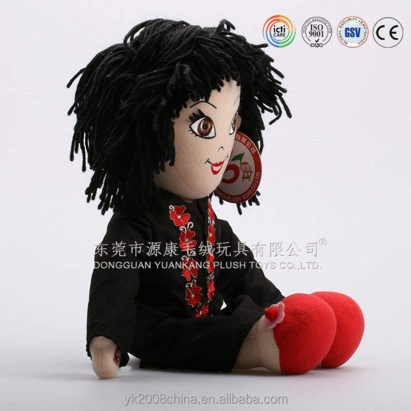 ตุ๊กตาผ้ากำมะหยี่น่าเกลียดมีผมสีดำ