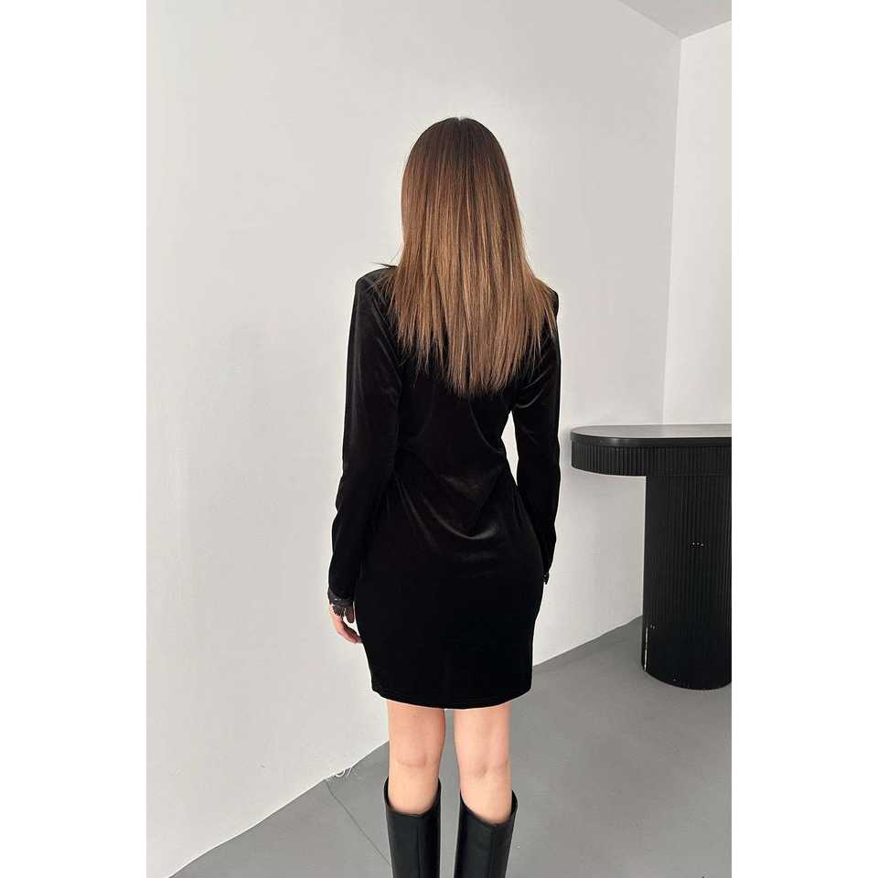 ชุดราตรีสีดำแบบมินิขายส่ง พร้อมปกและแขนเสื้อลูกไม้สุดหรู