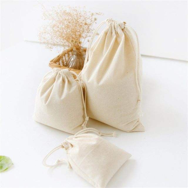 ถุงผ้าฝ้ายมัสลินสีดำแบบหูรูดพิมพ์แบบกำหนดเองสำหรับบรรจุภัณฑ์ผลิตภัณฑ์อาหารหรือรองเท้าช้อปปิ้งผ้าแคนวาสแบบซักได้