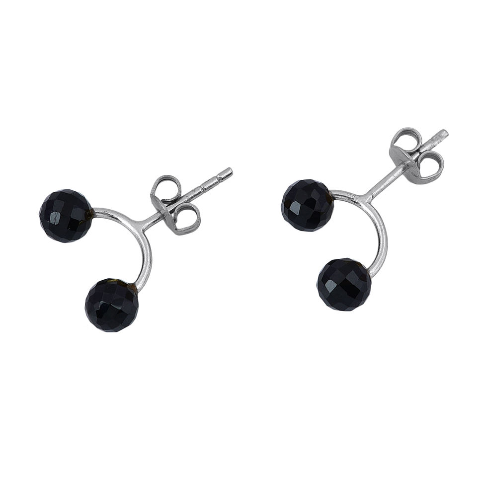 ต่างหูเม็ดเดี่ยวอัญมณีเม็ดกลมสีดำแบบแฮนด์เมดเครื่องประดับเงินขายส่งผู้ผลิต Casa de Plata