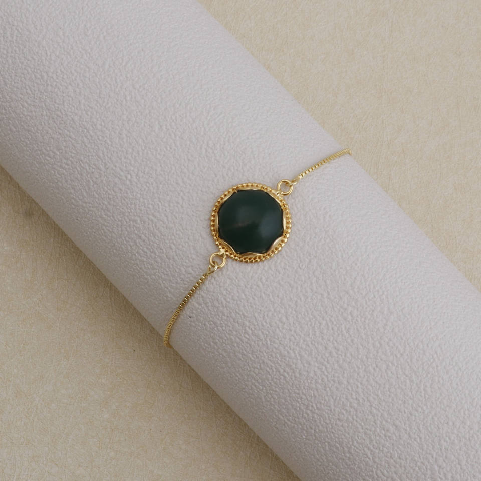 สร้อยข้อมือชุบโทนสีทองรูปทรงโอนิกซ์สีดำอัญมณีธรรมชาติกำไลแฟชั่น