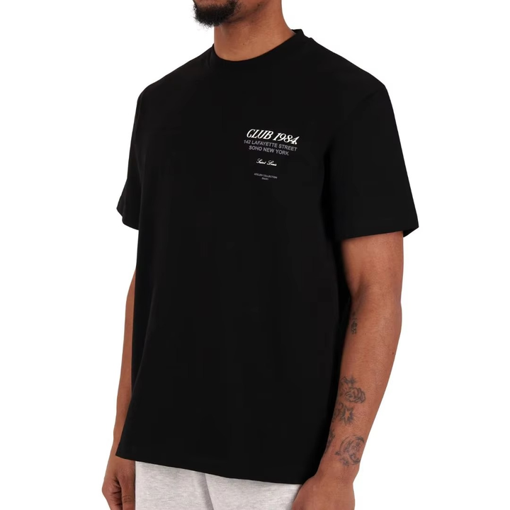 เสื้อยืดสีดำโอเวอร์ไซส์ของผู้ชายอินเทรนด์