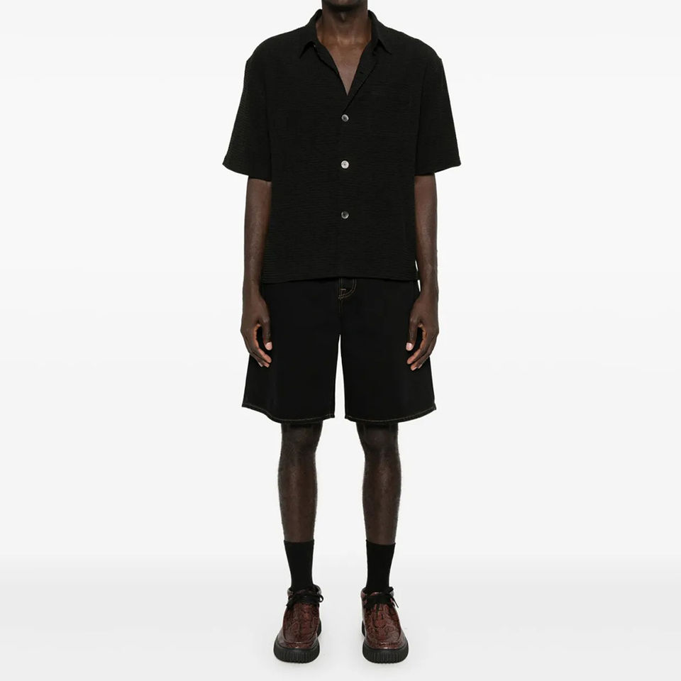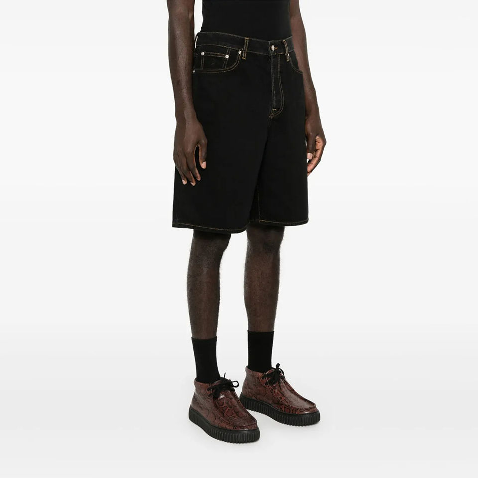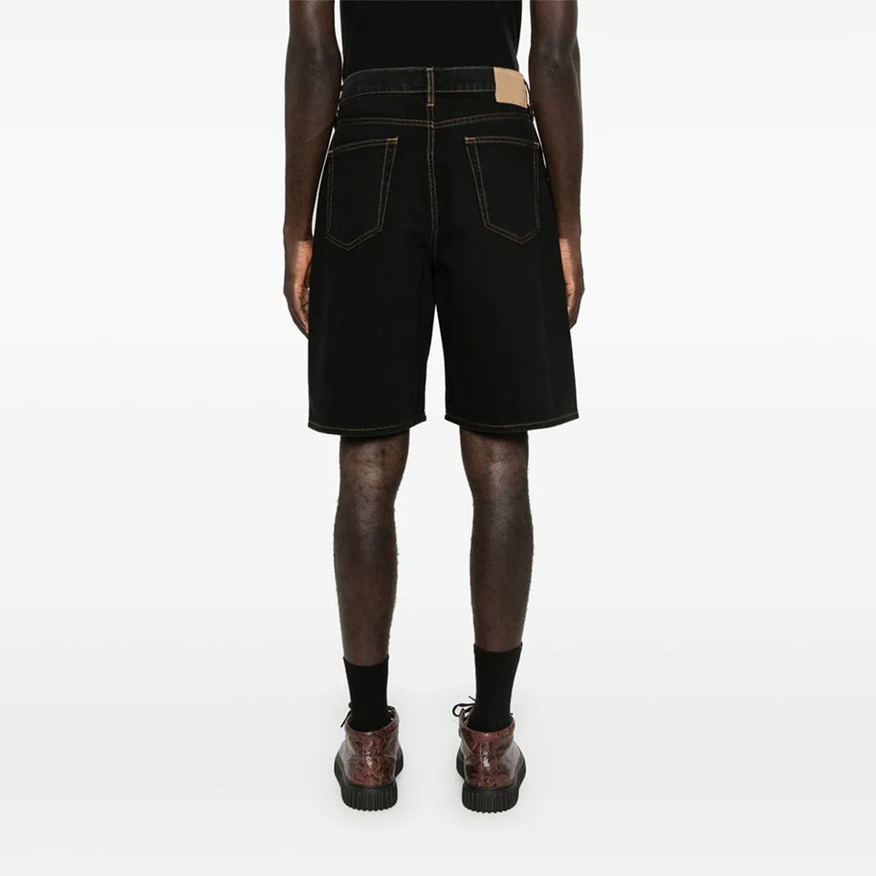 กางเกงยีนส์ขาสั้นสีดำทรงโอเวอร์ไซส์แบบวินเทจสำหรับผู้ชาย ผ้าฝ้ายเดนิม กางเกงขาสั้นสไตล์สตรีทแวร์ทรงหลวม