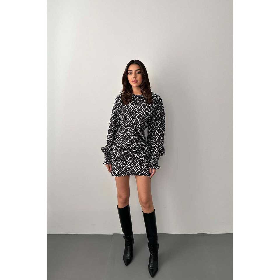 เดรสทรงบอดี้คอนสีดำลายจุด คอทรงโอ เอวธรรมชาติ ผ้าทอ เหมาะสำหรับงานปาร์ตี้และใส่ลำลอง ขายส่ง