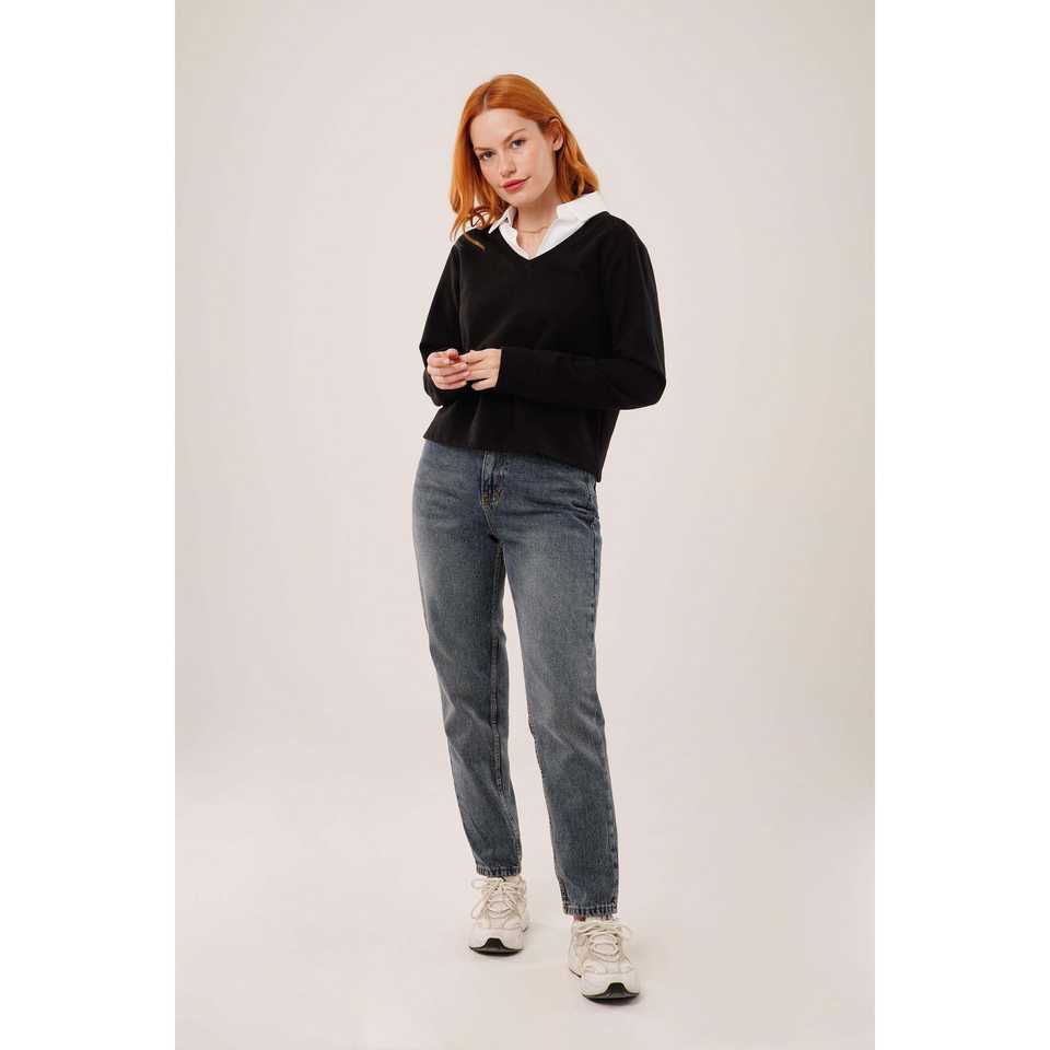 เสื้อเชิ้ตผ้าป๊อปลินสีดำขายส่งพร้อมดีเทลปกเสื้อ