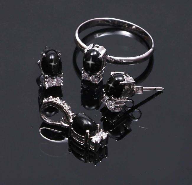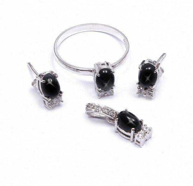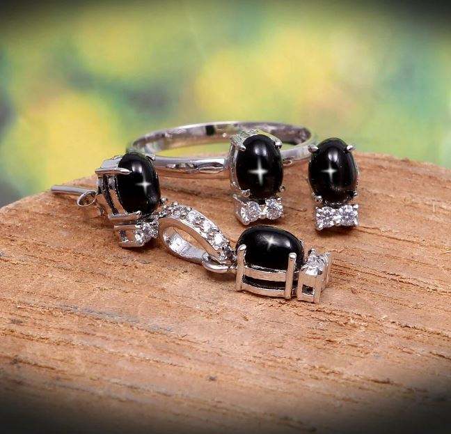 Wholesale Black Star Sapphire Ring Earrings Pendant Jewelry Set 925 Silver Black Star Sapphire Earrings Wedding Jewelry Sets