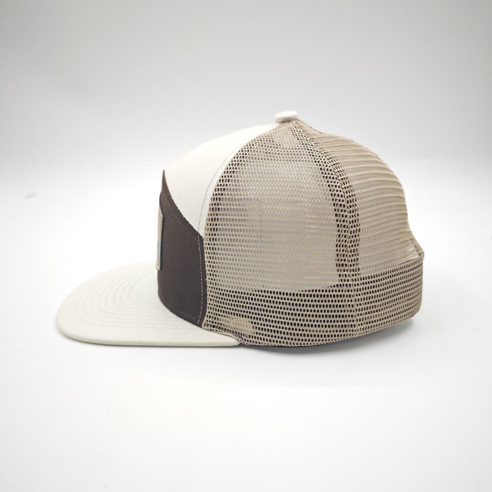 หมวกแก๊ปทรงทรัคเกอร์แบบ 7 แผง ปีกแบน ผ้าอ็อกซ์ฟอร์ด สำหรับขายส่ง ไม่มีลาย แบบยูนิเซ็กซ์ สามารถสั่งทำโลโก้ได้ ด้านหลังเป็นผ้าตาข่าย รุ่น Richardson 168 แบบ Snapback