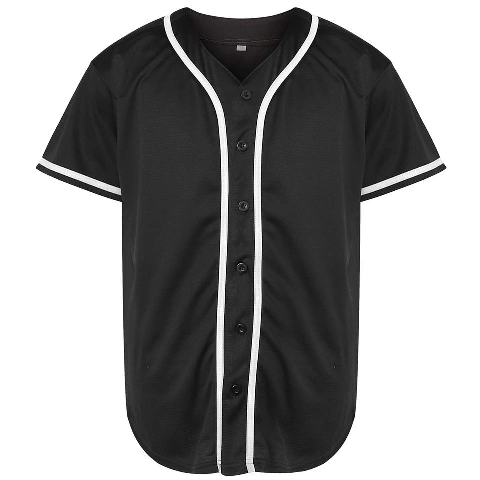 เสื้อเจอร์ซีย์สำหรับผู้ชายเสื้อเบสบอลกระดุมเสื้อเบสบอลผ้าโพลีเอสเตอร์คอวีออกแบบได้ตามที่ต้องการ