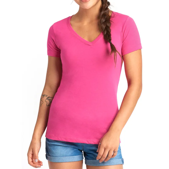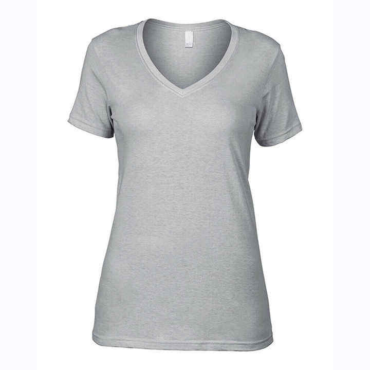 เสื้อยืดคอวีลึกไม่มีแบรนด์สำหรับผู้หญิงเสื้อยืดผ้าฝ้ายปั่นด้าย100%