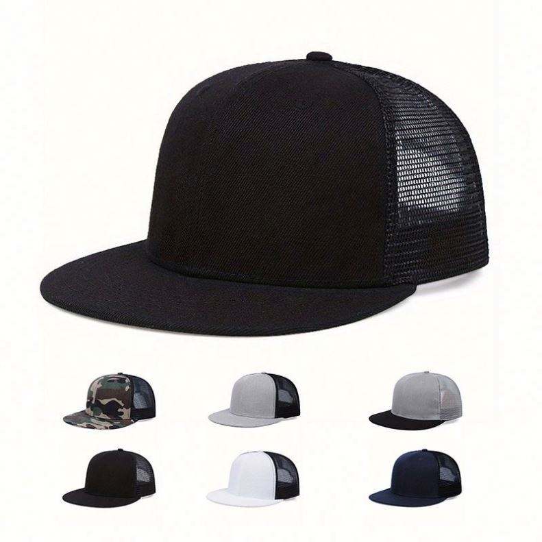 หมวกแก๊ปเปล่าขายส่ง ปักโลโก้ตามสั่ง หมวกทรงแบนตาข่ายแบบ Snapback Trucker