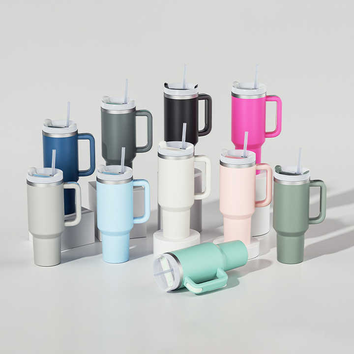ขายส่งแก้วน้ําท่องเที่ยวเปล่าพิมพ์แก้วสแตนเลสแก้วน้ําระเหิด 40 ออนซ์พร้อมที่จับและฟาง