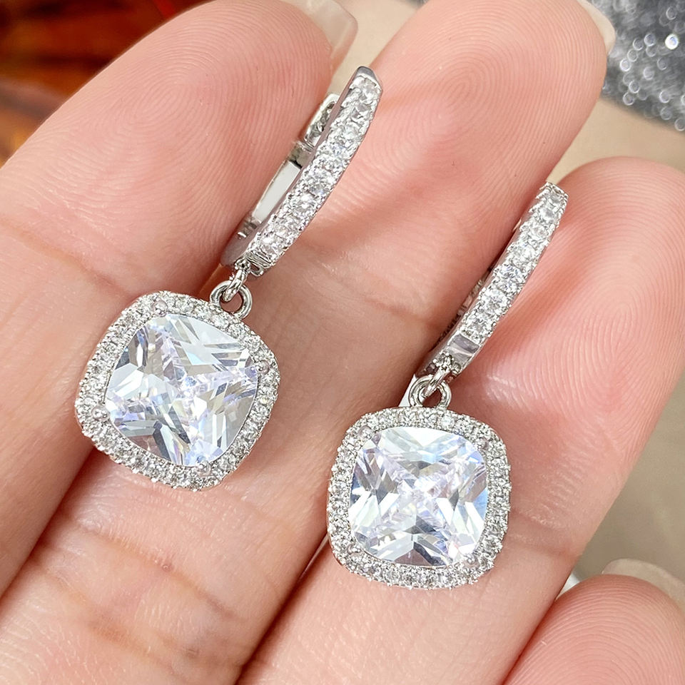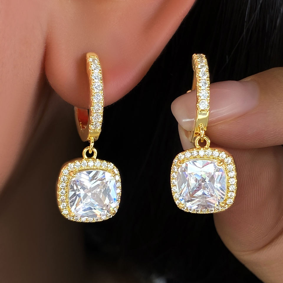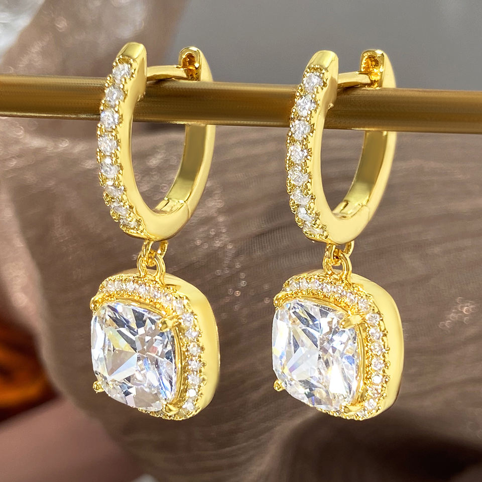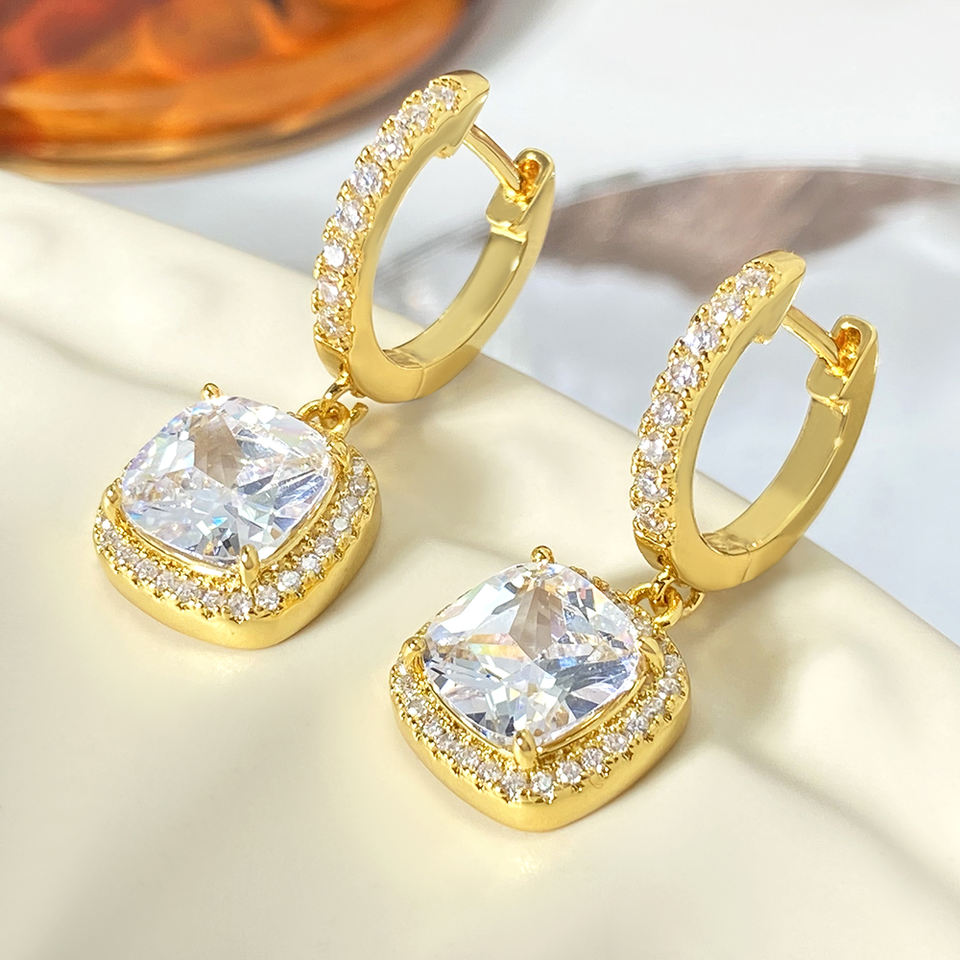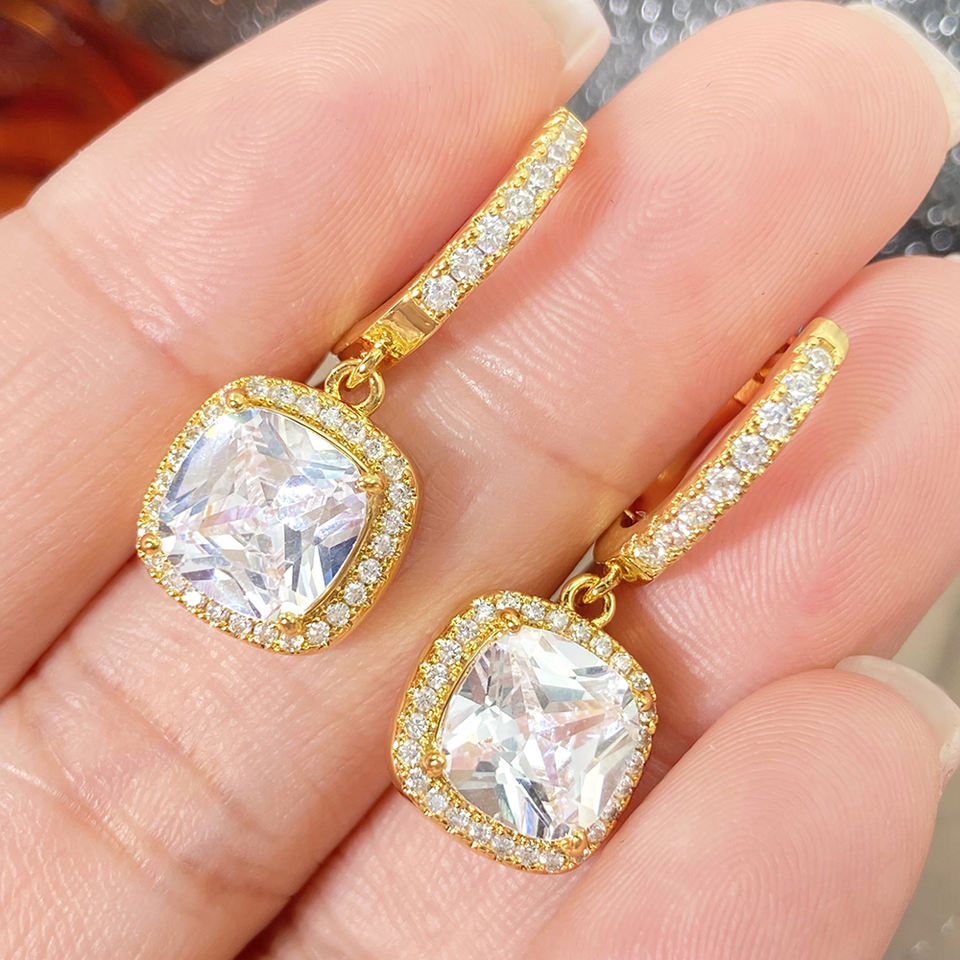 ต่างหูห่วงประดับเพชรซีกอนทรงสี่เหลี่ยมชุบทอง 18k แบบขายส่งสำหรับผู้หญิง