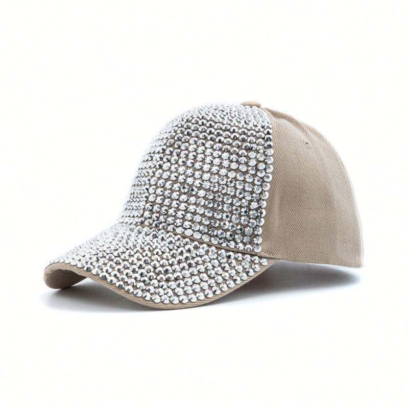หมวกเบสบอลประดับพลอยส่องแสงเป็นประกายระยิบระยับสำหรับทุกเพศสีชมพูหัวเข็มขัดโลหะทำจากผ้าฝ้าย100% ออกแบบได้ตามต้องการ