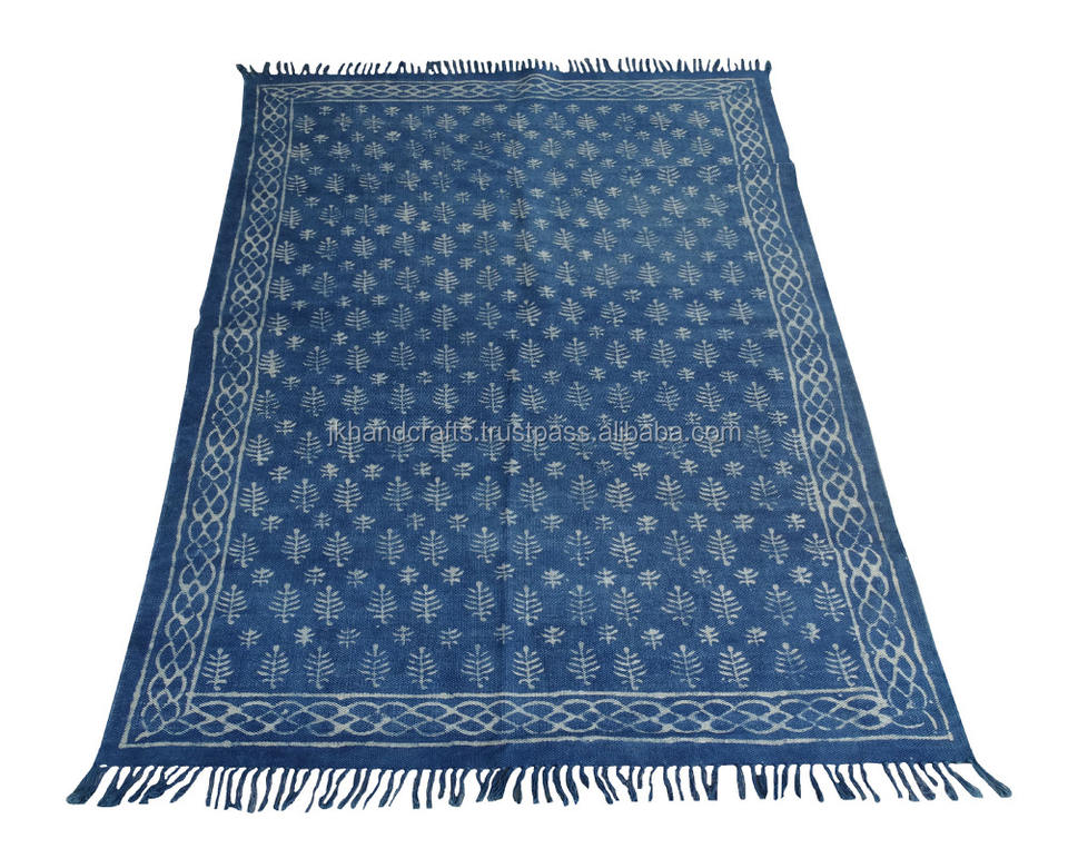 พรมผ้าฝ้ายพิมพ์ลายบล็อกทำมือพรมปูพื้น