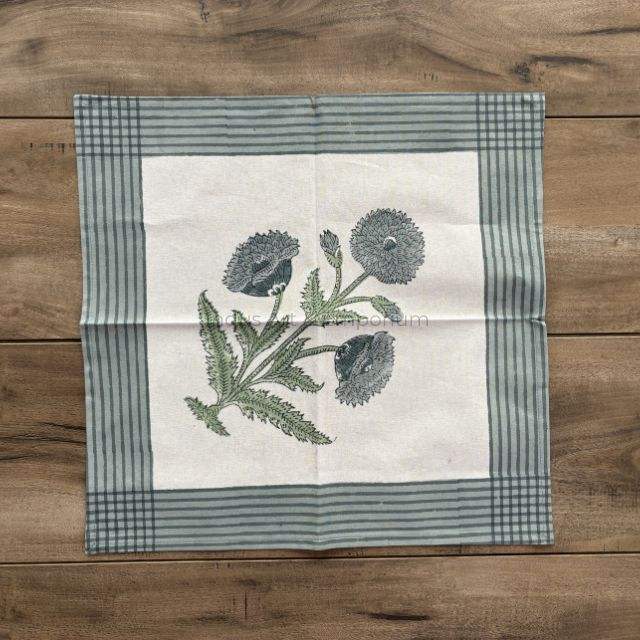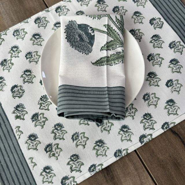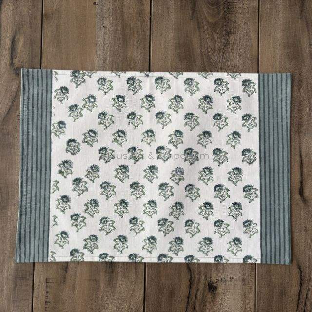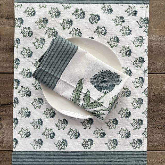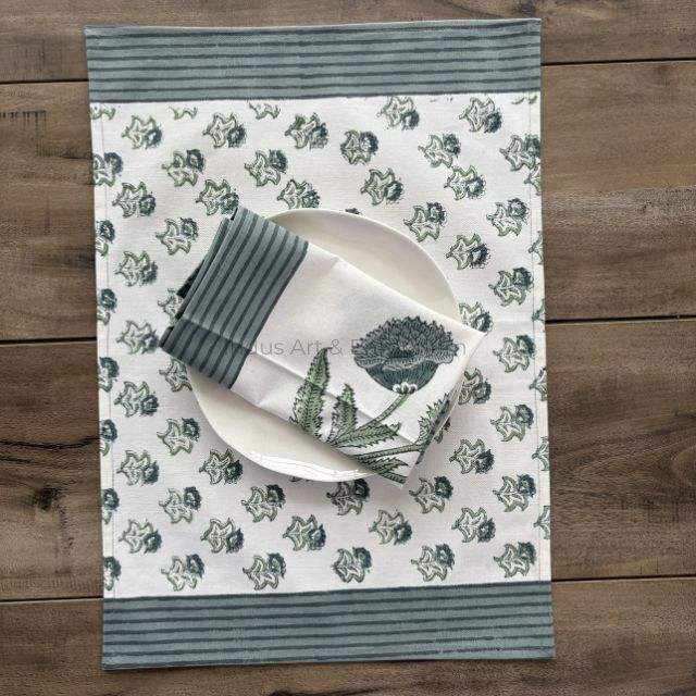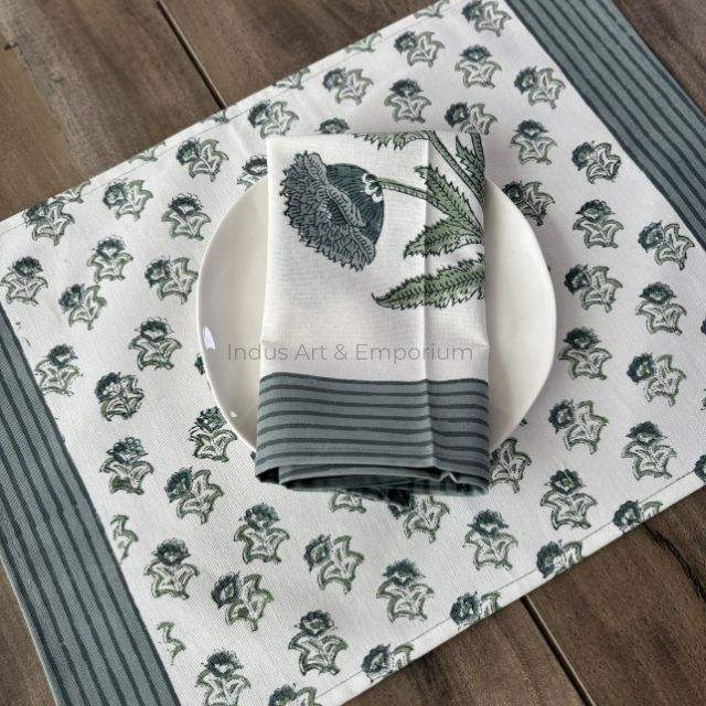 แผ่นรองจานผ้าฝ้ายพิมพ์ลายบล็อกพร้อมแผ่นรองจาน6ชิ้นเสื่อทอมือ jaipuri 6ชิ้นพร้อมผ้าเช็ดปาก