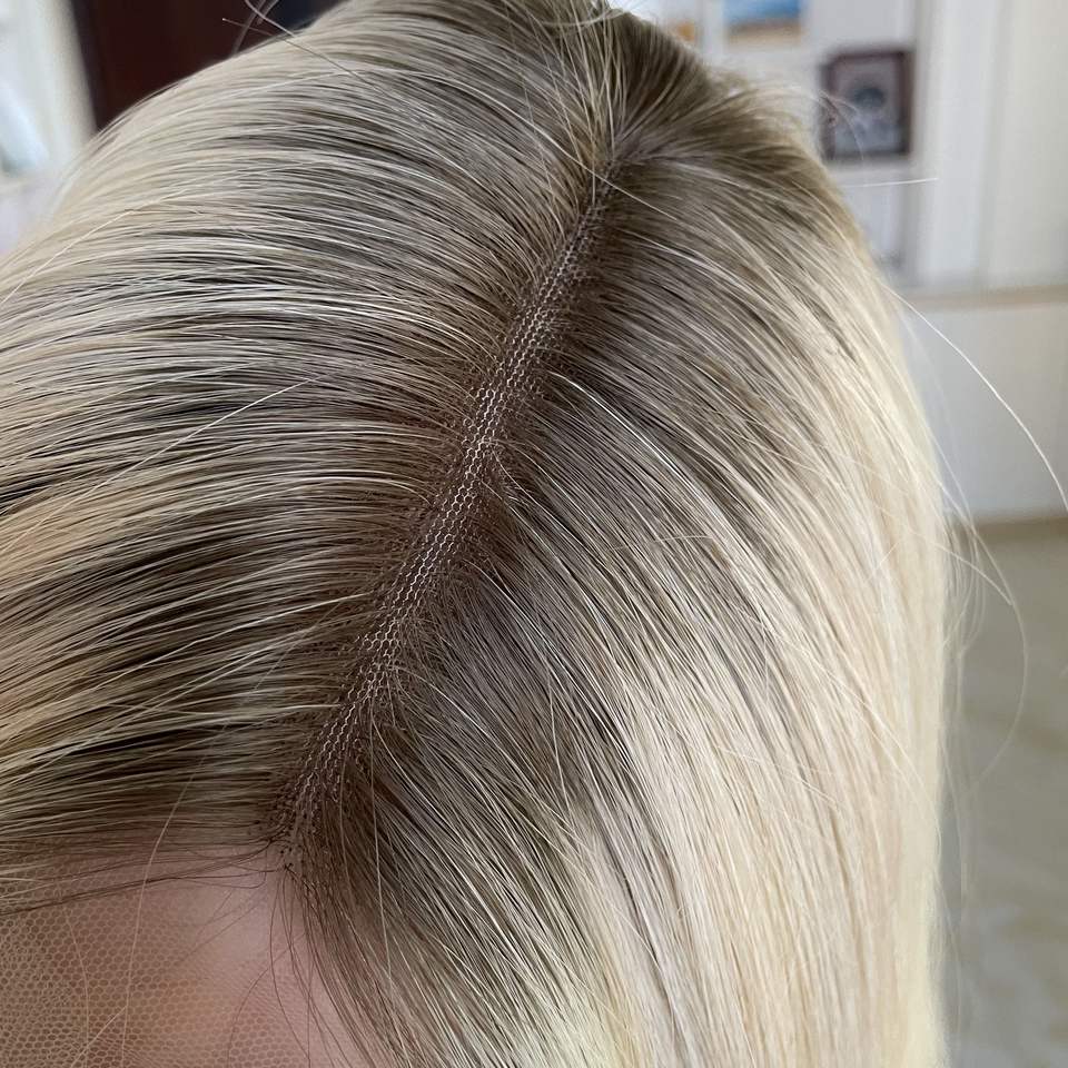 วิกผมแท้สีบลอนด์แบบยุโรป ไม่ต้องใช้กาว ไฮไลท์แบบดับเบิ้ลดรอน จัดเรียงเกล็ดผม วิกผมลูกไม้ HD สำหรับผู้หญิง