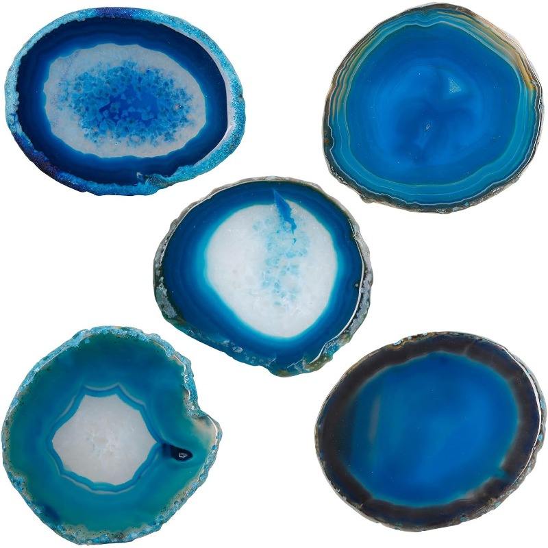 แผ่นรองแก้วหินอาเกตสีน้ำเงินขัดเงา แผ่นหินจีโอดรูปทรงไม่สม่ำเสมอ สำหรับตกแต่งบ้าน สำนักงาน งานแต่งงาน