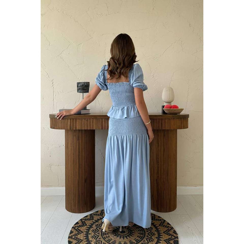ชุดผ้าลินินสีน้ำเงิน Gipeli ขายส่ง ชุดเดรสสองชิ้นแฟชั่นสไตล์ Prairie Chic แขนสั้น ระบายอากาศได้ดี สำหรับผู้หญิง