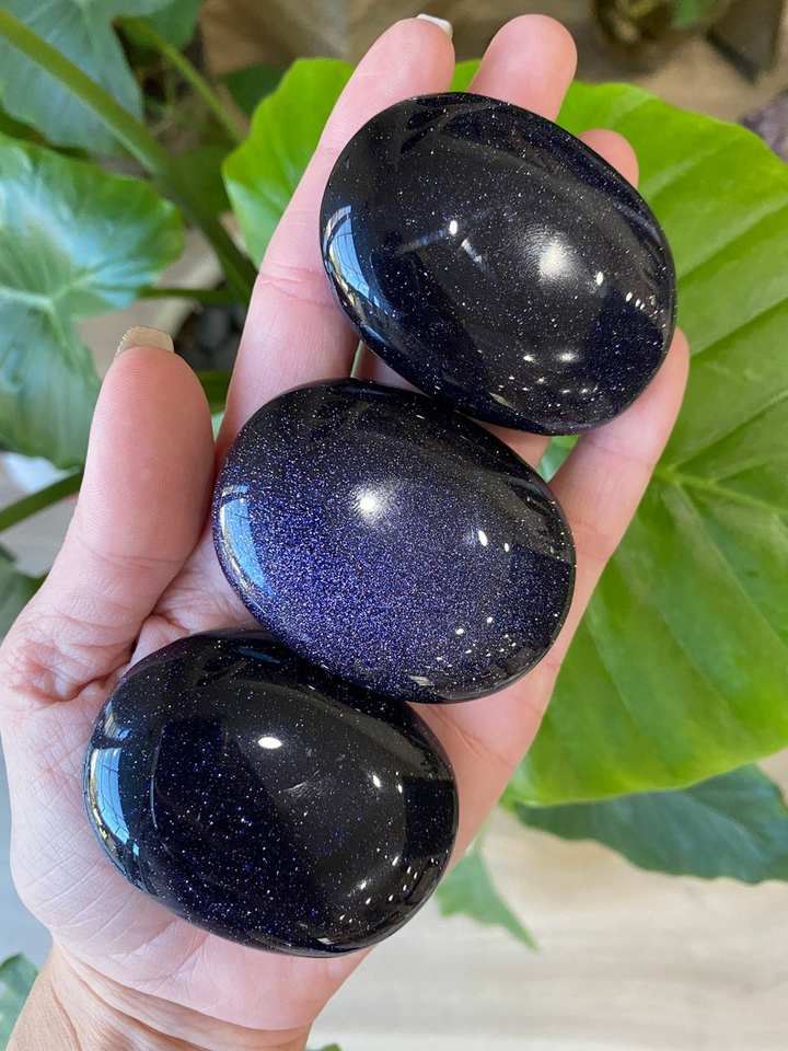 Product name:Blue Goldstone Palm Stone