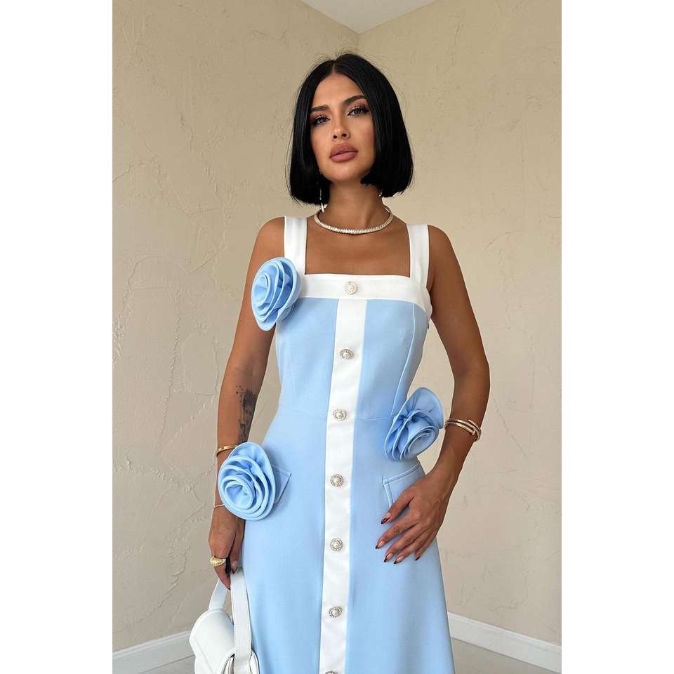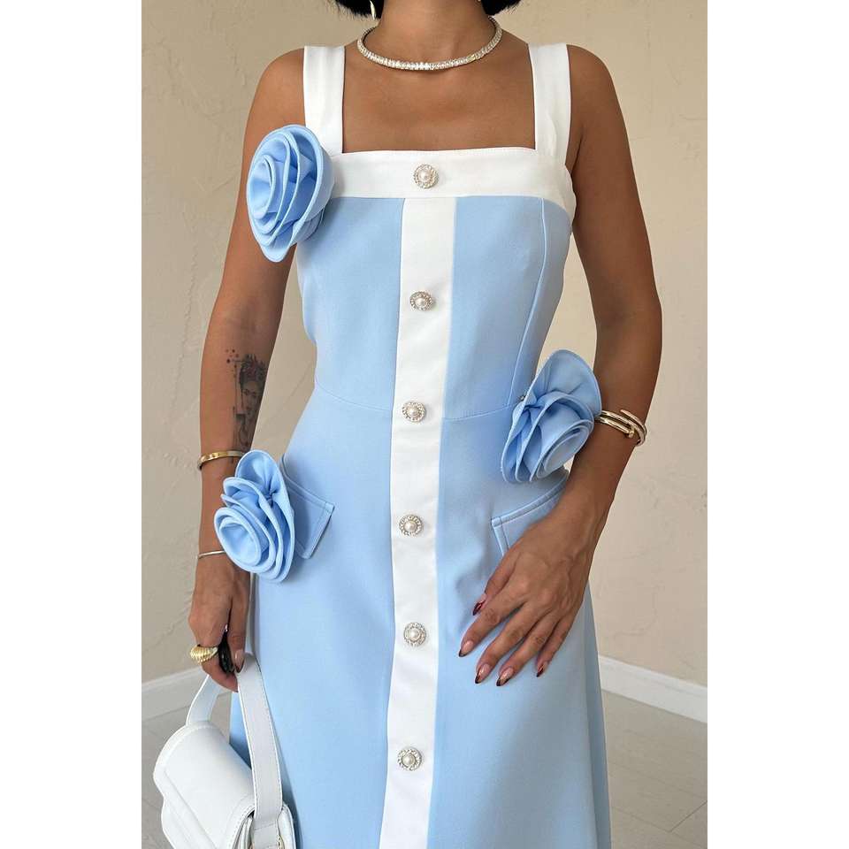 เดรสยาวลายดอกกุหลาบสีน้ำเงิน สายเดี่ยว แต่งซิป คอเหลี่ยม สไตล์เรียบร้อย สำหรับฤดูใบไม้ร่วง ใส่เที่ยวกลางคืน ไซส์ XS รับผลิตแบบ ODM