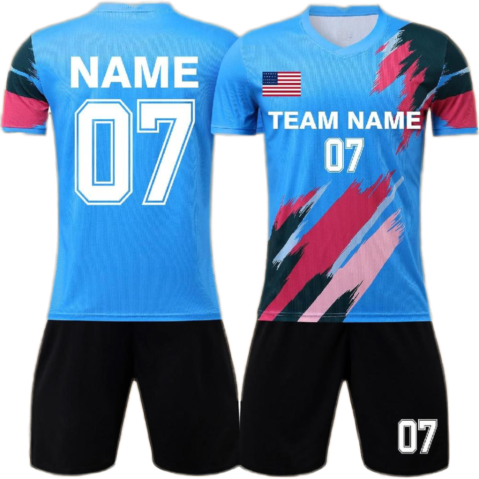 ชุดกีฬาฟุตบอลระบายอากาศได้ดีสำหรับผู้ใหญ่ผู้ชายชุดเสื้อฟุตบอลสีฟ้า