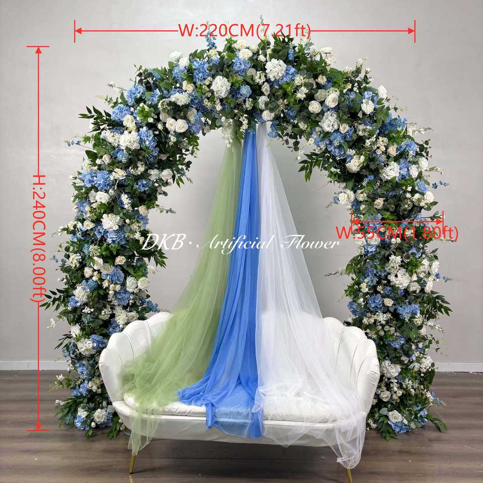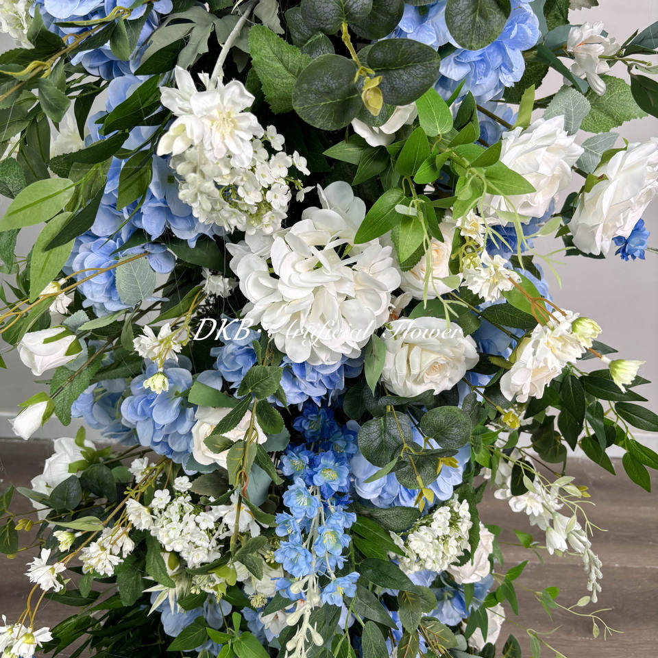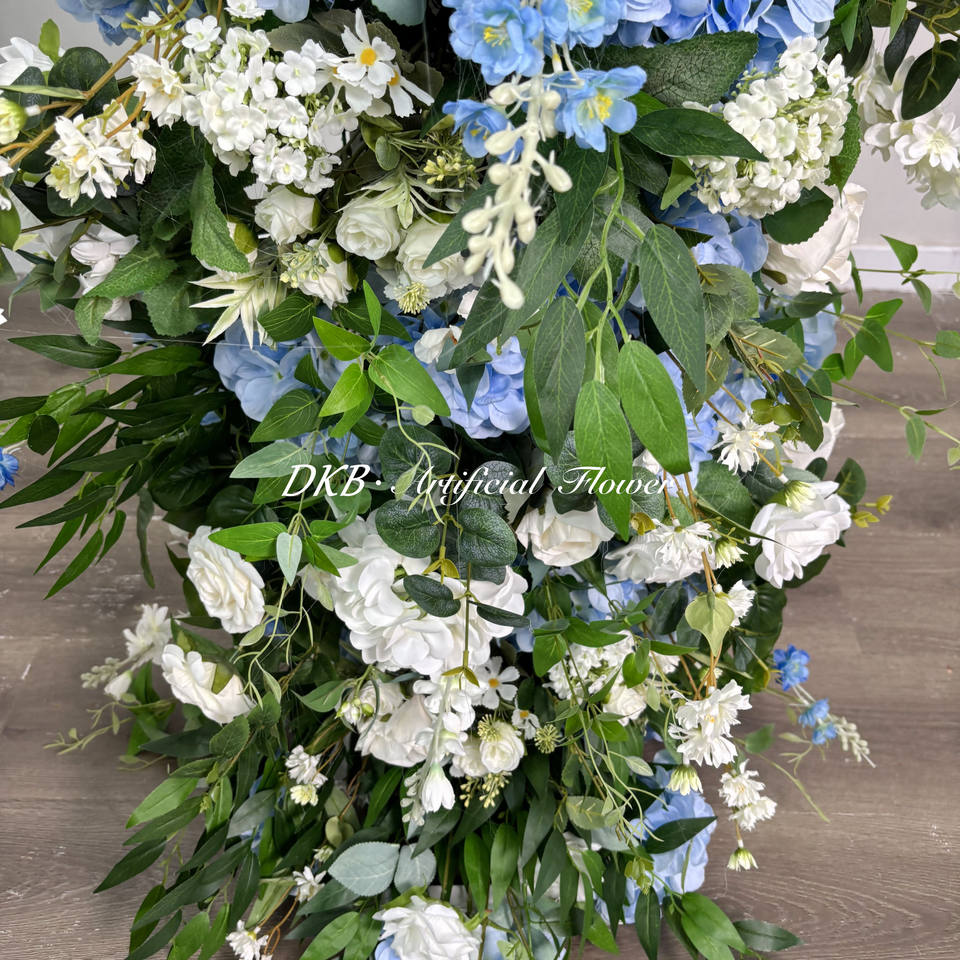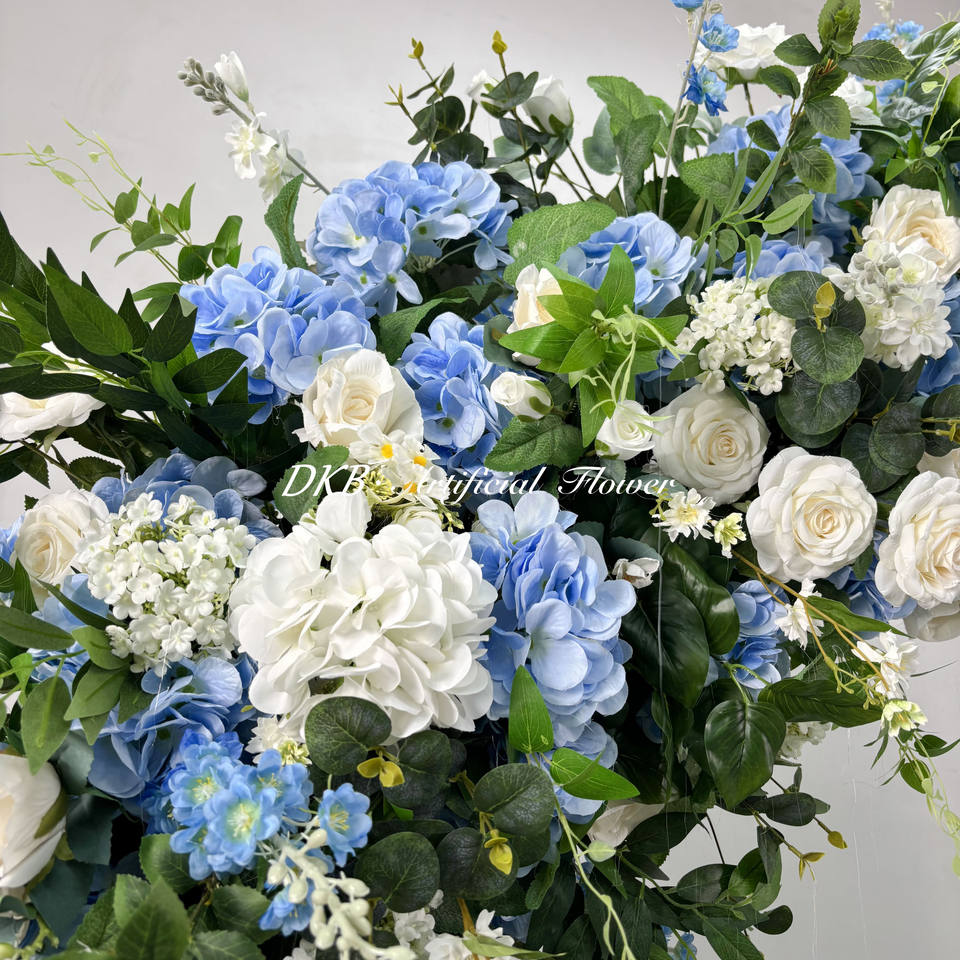 ซุ้มดอกไม้ประดิษฐ์สีสันสดใสสำหรับตกแต่งงานแต่งงานสีฟ้าและสีขาว