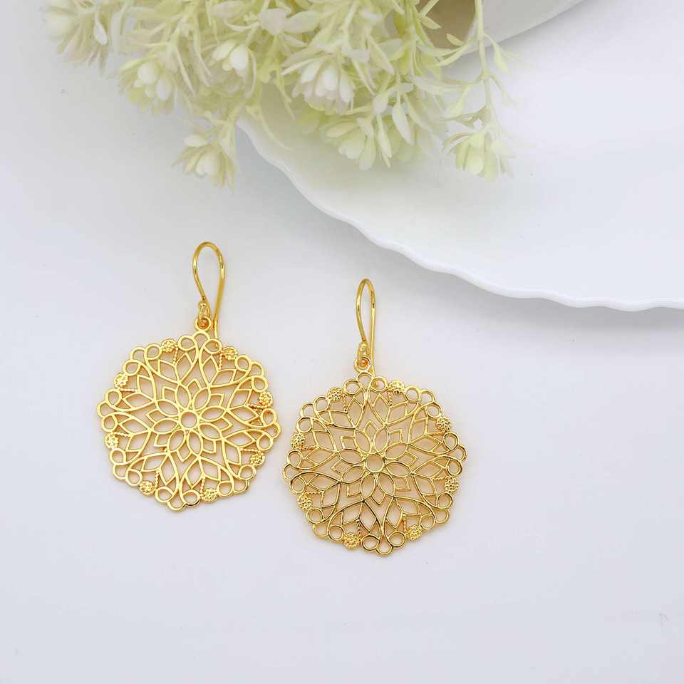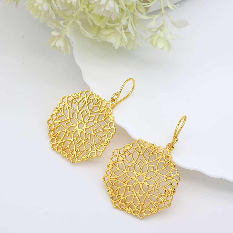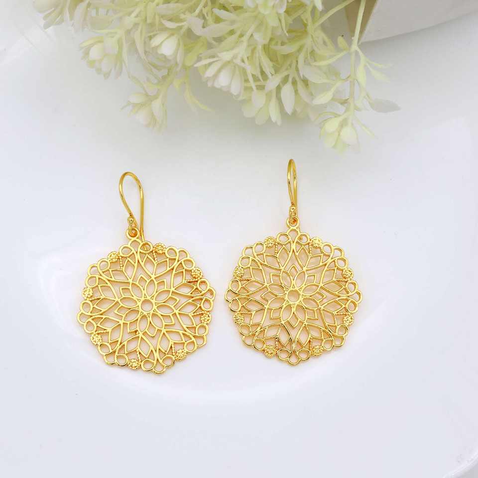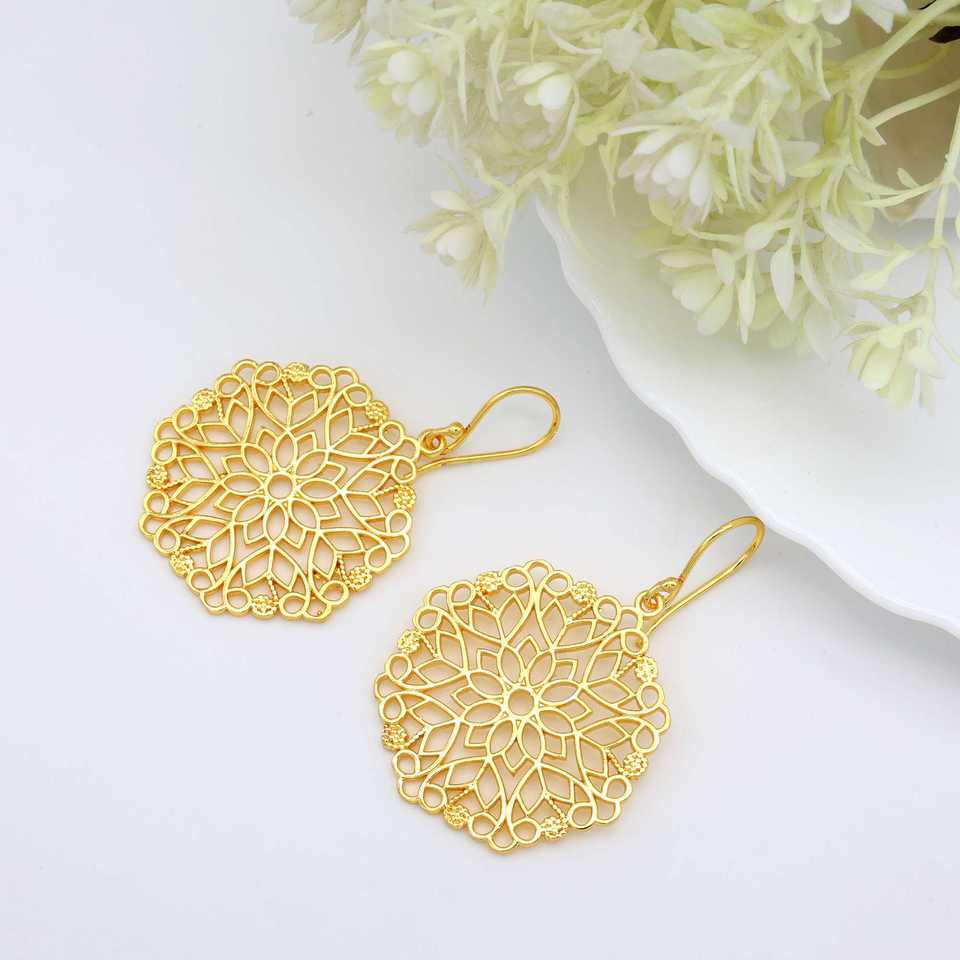 ต่างหูทรงเรขาคณิตลายดอกไม้แมนดาลาสไตล์โบฮีเมียนสีทองประดับลูกไม้ของขวัญแฟชั่นแบบห้อยสำหรับผู้หญิง