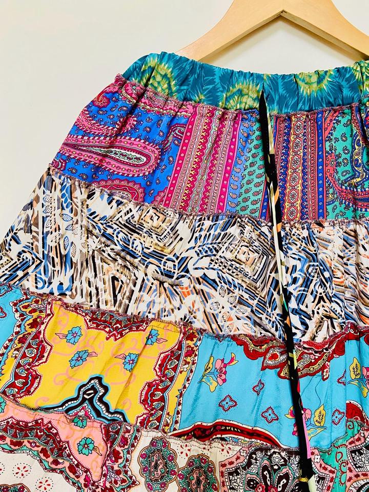 กระโปรงแม็กซี่ผ้าไหมสไตล์โบฮีเมียนแบบขายส่ง ลายปะติดหลากสีสัน สไตล์แฟรี่คอร์ แบบยาวพลิ้วไหว ลายทาง รีไซเคิล สำหรับงานปาร์ตี้อิบิซ่า