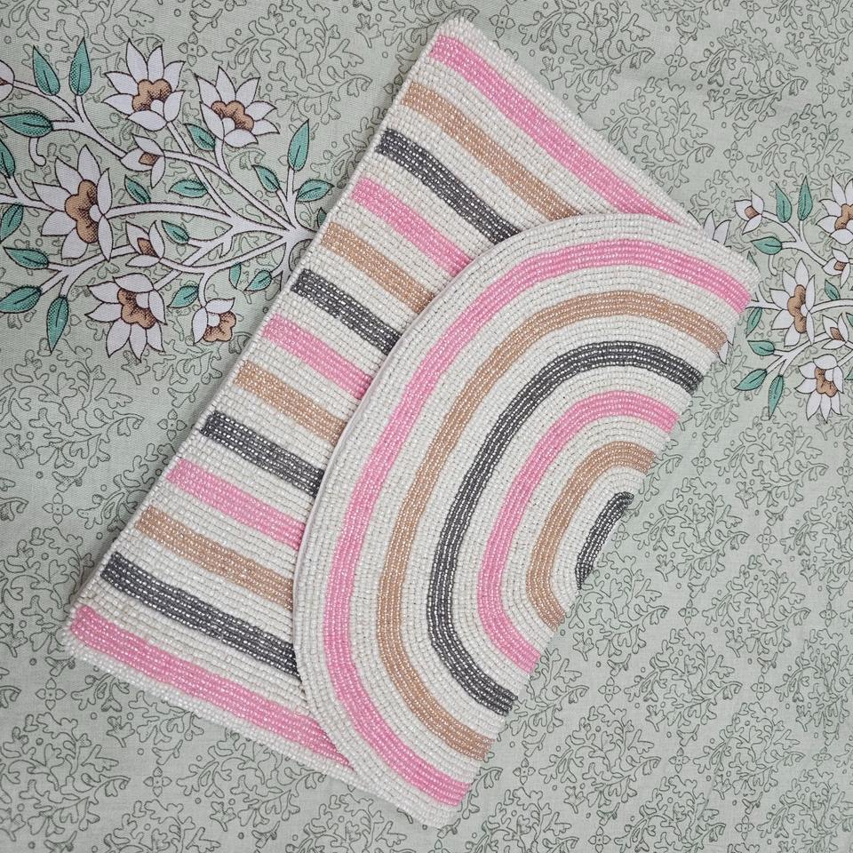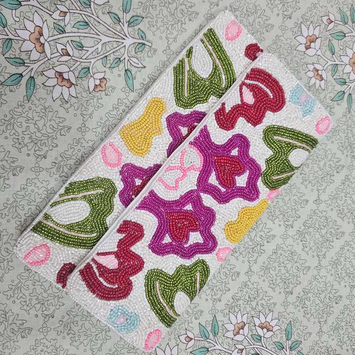 Boho กระเป๋าแฟชั่นสำหรับเด็กผู้หญิงกระเป๋าเงินปาร์ตี้ปักลายสีสันสดใสทำมือสีขาวมีซิปสายโซ่สำหรับเดินทาง