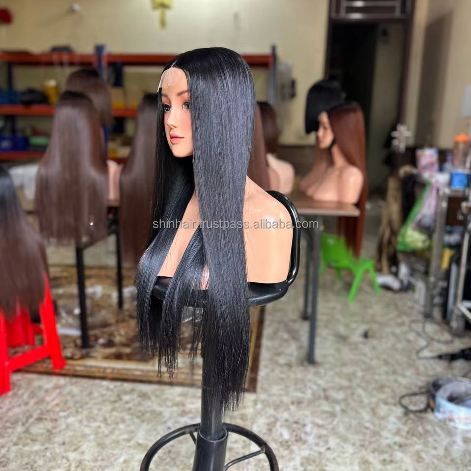 วิกผมตรงธรรมชาติแบบไม่ต้องใช้กาวสำหรับผู้หญิงผิวดำ พร้อมส่ง ผลิตภัณฑ์วิกผมแท้จากเวียดนาม ไม่ต้องใช้กาว