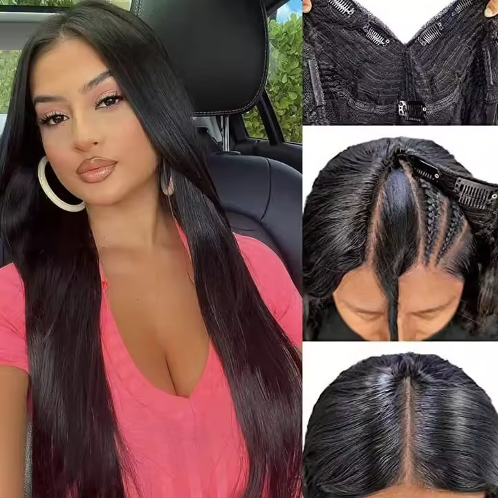 วิกผมแท้ทรงตรงสำหรับผู้หญิงผิวดำวิกผมมนุษย์แบบเรมี่แท้ทรงตรงส่วนรูปตัววี