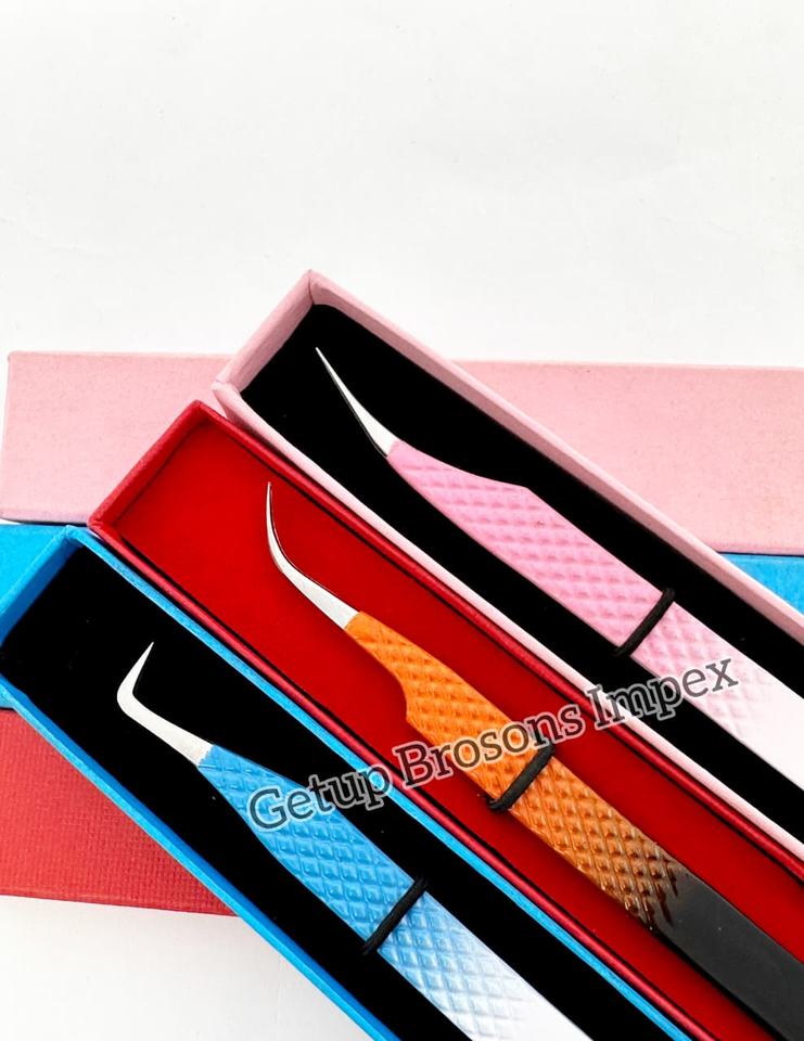 แหนบสำหรับต่อขนตาปลายโค้งสีเงินแยกเคลือบสองสีแตกต่างกันเครื่องมือความงาม