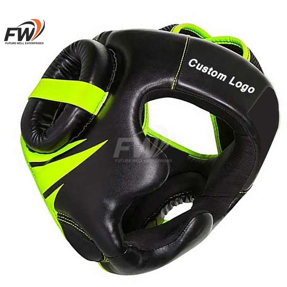 หมวกป้องกันศีรษะสำหรับฝึกซ้อมมวยแบบขายส่ง ทำจากหนัง สำหรับคิกบ็อกซิ่ง ป้องกันใบหน้าแบบสามสี