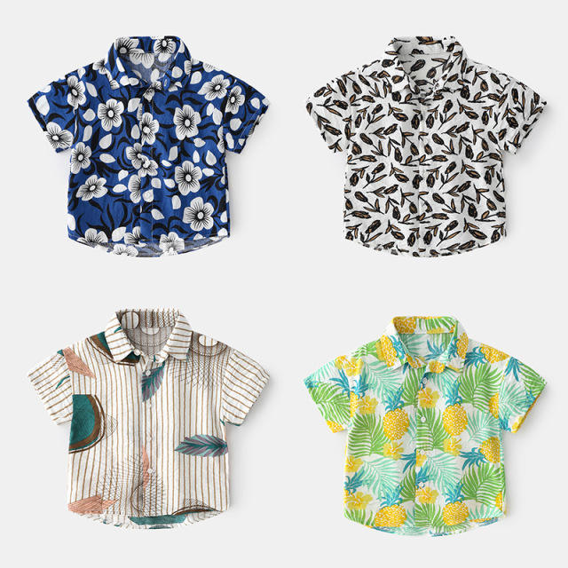 เสื้อเชิ้ตแขนสั้นลายการ์ตูนผ้าฝ้ายฤดูร้อนสำหรับเด็กผู้ชาย
