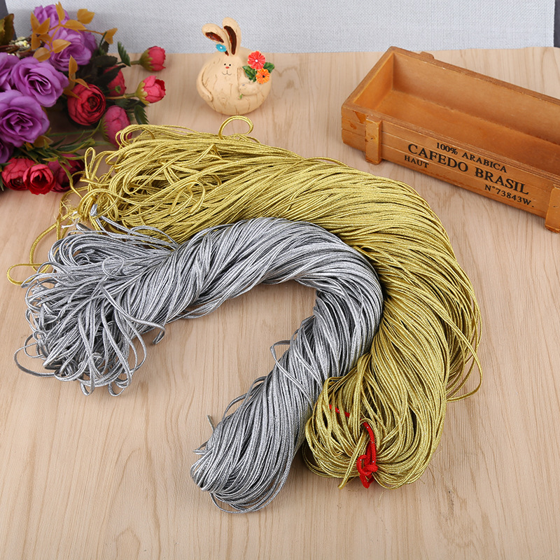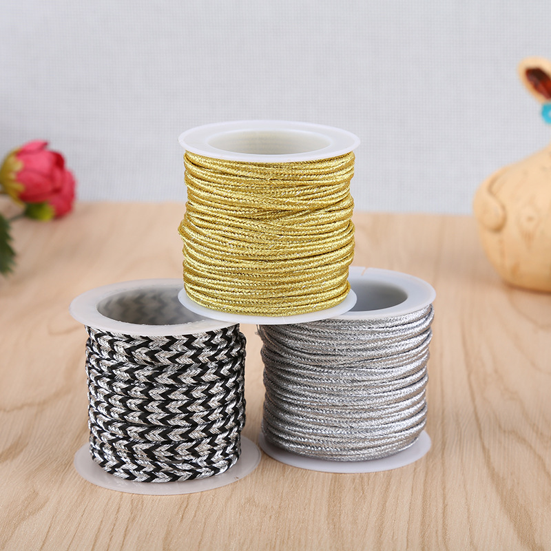 เชือกถักโลหะแบบขายส่ง ขนาด 2 มม. 3 มม. 4 มม. 5 มม. 7 มม. สีทอง สีเงิน เชือกซูทาเช่ สายตกแต่งซูทาเช่ เชือกสำหรับทำเครื่องประดับ